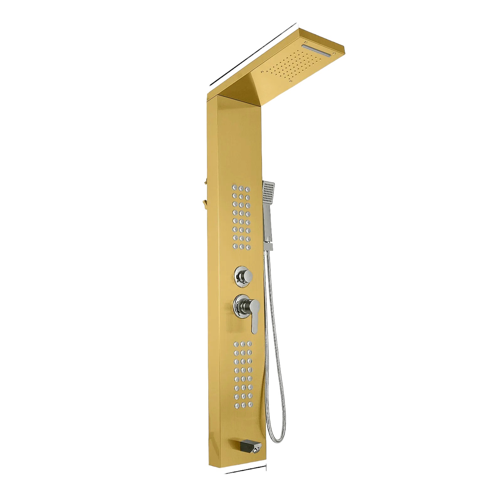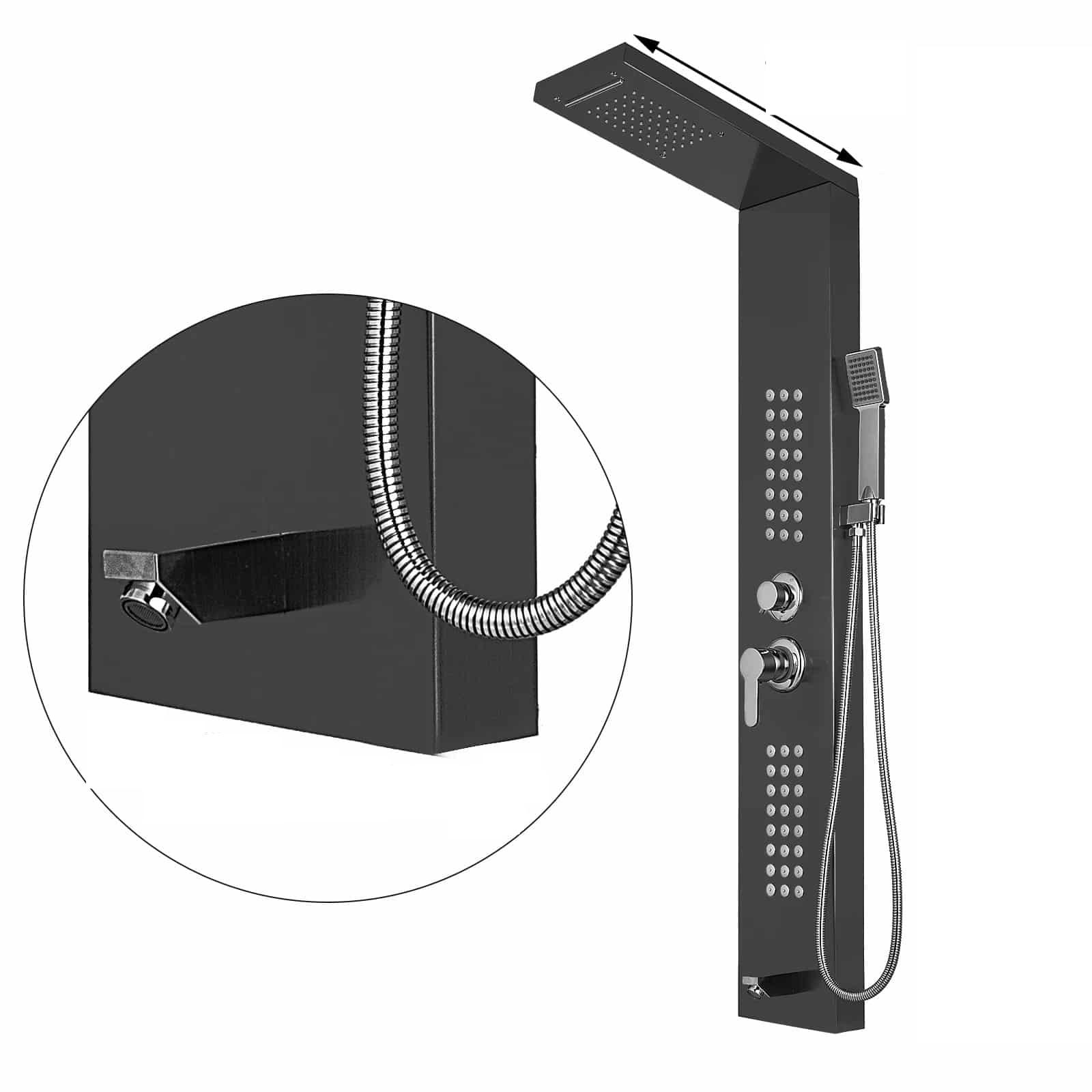 La Colonne de douche hydromassante en inox est dotée de plusieurs fonctionnalités pratiques, incluant une douchette manuelle, un grand pommeau de douche pluie, et des jets hydromassants ajustables. Chaque élément est conçu pour maximiser votre confort, vous permettant de personnaliser votre expérience de douche selon vos préférences.