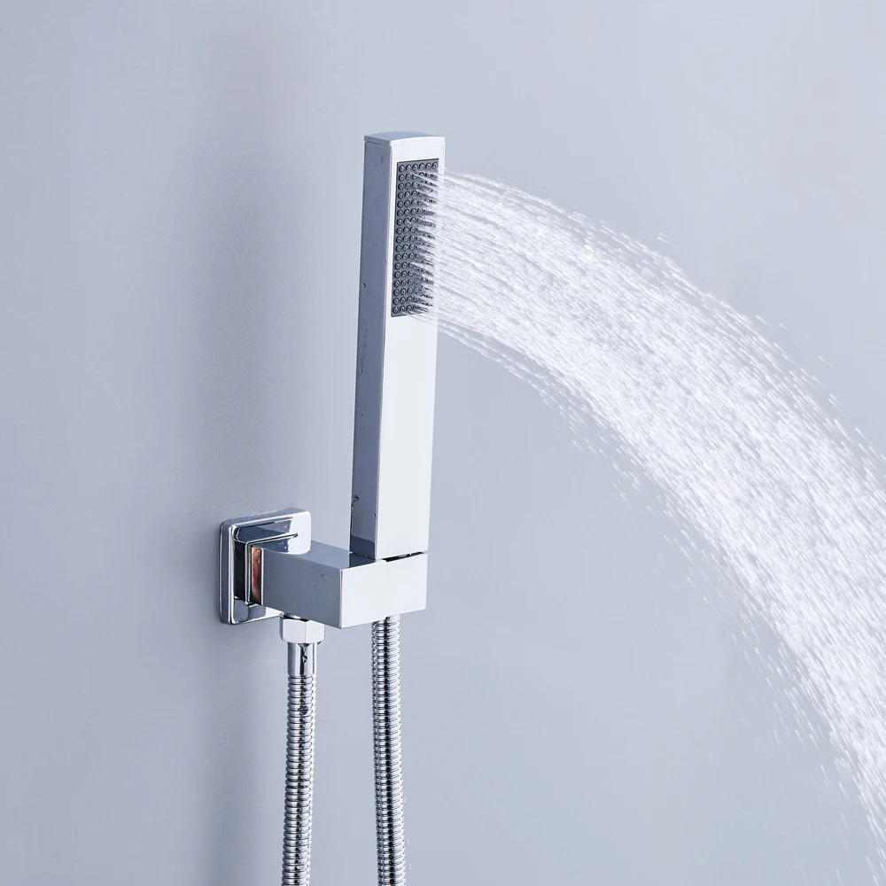 Cet ensemble de douche à encastrer offre une expérience de douche luxueuse grâce à sa tête de douche effet pluie, qui vous enveloppe dans un flux d’eau doux et apaisant. De plus, le pommeau à main vous permet de diriger l’eau avec précision, ajoutant une dimension pratique à votre douche quotidienne.