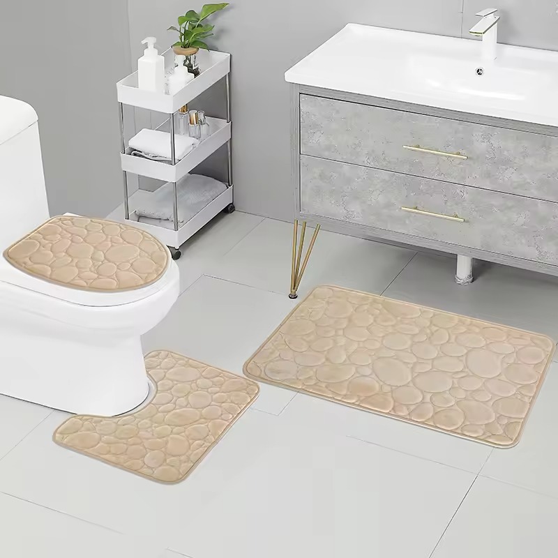 Améliorez l’esthétique de votre salle de bain avec cet ensemble de tapis de bain 3 pièces, offrant une coordination parfaite entre le tapis de sol, le contour WC et le couvercle. Chaque pièce combine fonctionnalité et style pour créer un espace harmonieux et accueillant.
