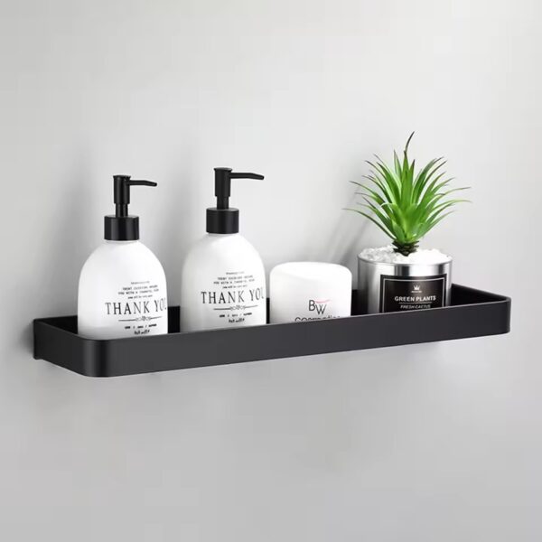 L’étagère murale noire, fabriquée en aluminium de haute qualité, offre à la fois robustesse et élégance. Sa finition noire mate s’intègre parfaitement à tout décor de salle de bain moderne, tout en résistant à la corrosion et à l’humidité.