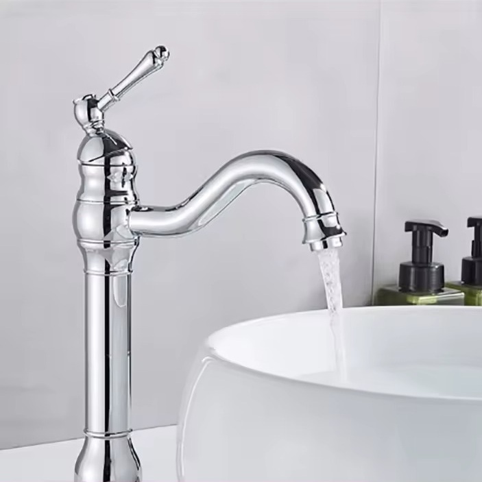 Ce robinet de salle de bain adopte un style vintage qui ajoute un charme rétro à toute salle de bain. Avec sa forme haute, il est non seulement un point focal esthétique mais aussi extrêmement pratique pour les vasques plus profondes.